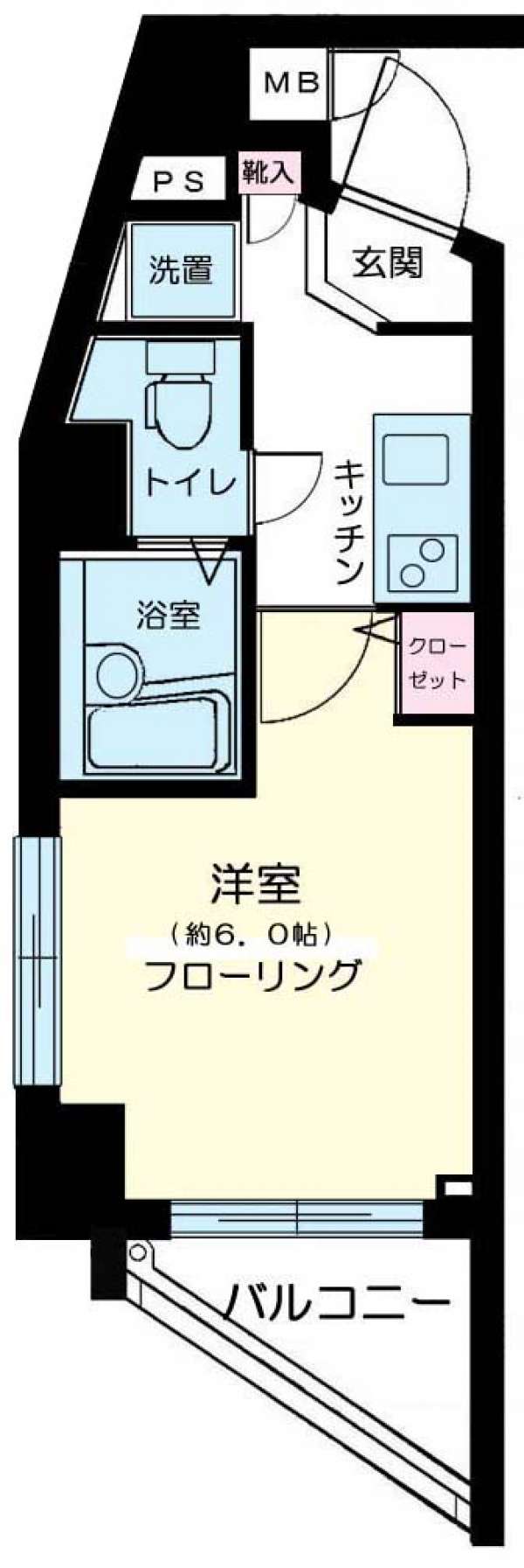 敷金ゼロ、礼金ゼロ、仲介手数料ゼロ、西向き、広さ20.47平米のお部屋です。