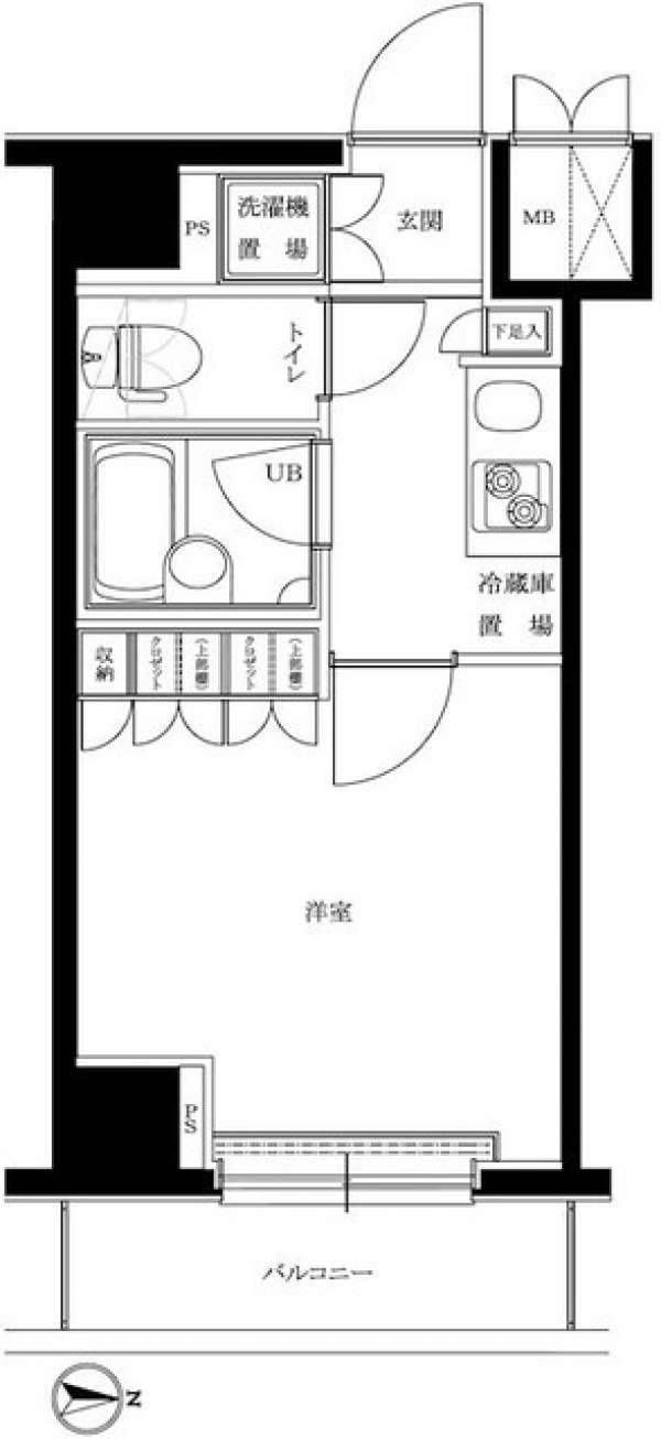 敷金ゼロ、広さ20.8平米のお部屋です。