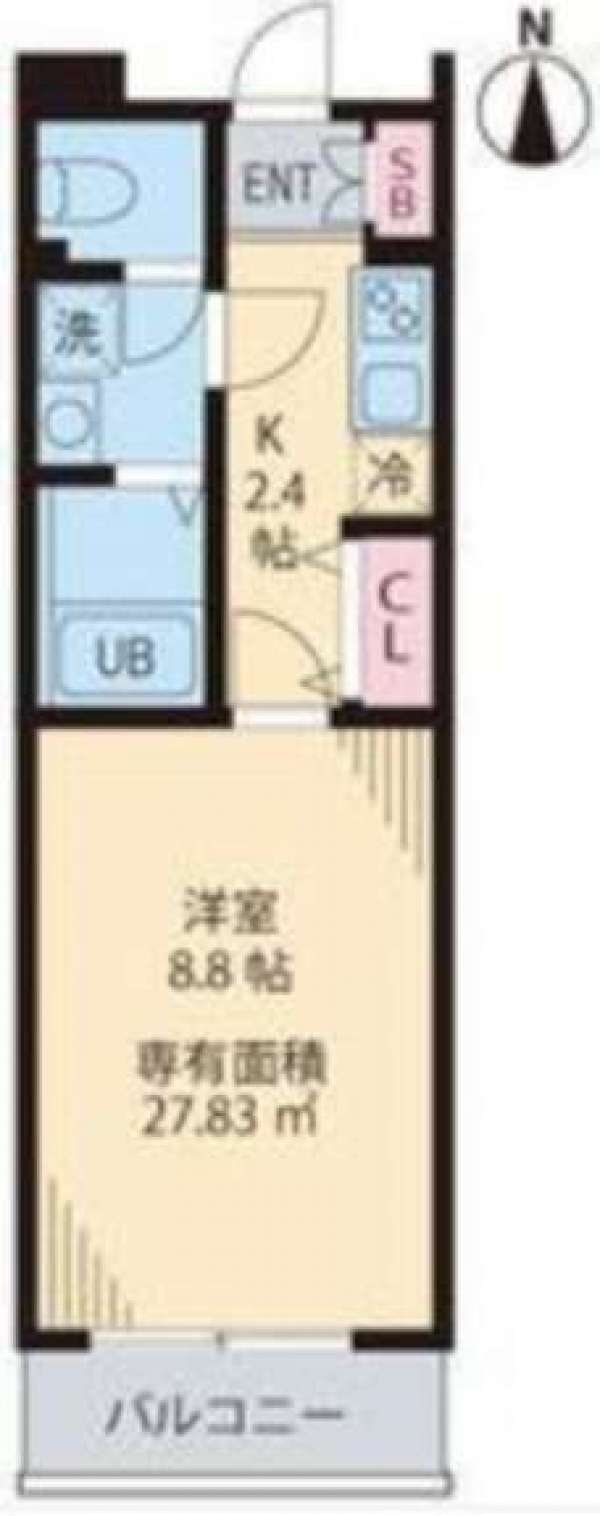 南向き、広さ27.83平米のお部屋です。